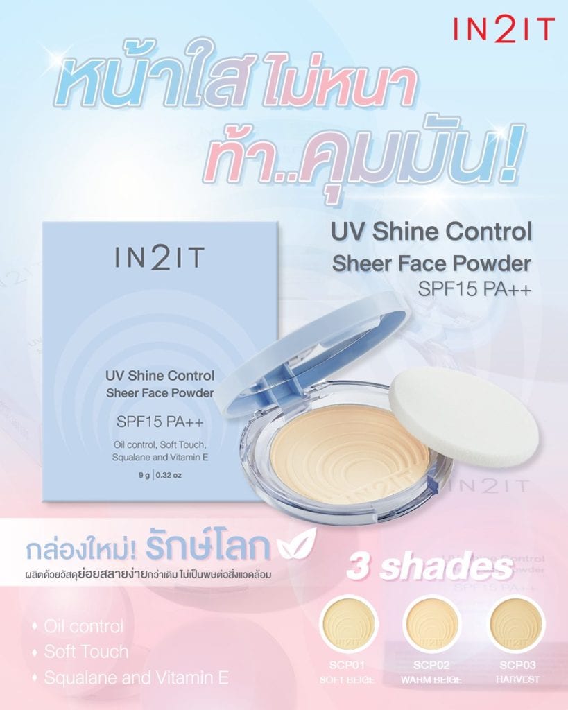 𝗜𝗡𝟮𝗜𝗧 𝗨𝗩 𝗦𝗵𝗶𝗻𝗲 𝗖𝗼𝗻𝘁𝗿𝗼𝗹 𝗦𝗵𝗲𝗲𝗿 𝗙𝗮𝗰𝗲 𝗣𝗼𝘄𝗱𝗲𝗿 𝗢𝗶𝗹 𝗖𝗼𝗻𝘁𝗿𝗼𝗹 แป้งผสมรองพื้นในตำนาน ตอนนี้เค้าออกกล่องใหม่ แบบรักษ์โลก ผลิตจากวัสดุที่ย่อยสลายได้ง่ายขึ้นกว่าเดิม ไม่อันตรายต่อสิ่งแวดล้อมด้วยน้าาา