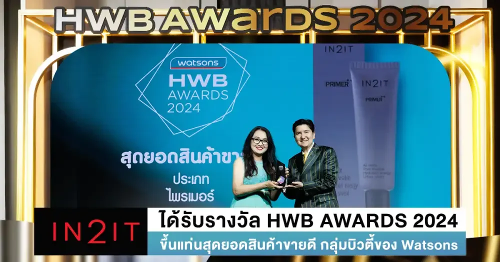 IN2IT ได้รับรางวัล HWB AWARDS 2024 จากวัตสัน ซึ่งเป็นรางวัลที่เปรียบเสมือนออสการ์แห่งวงการผลิตภัณฑ์ความงาม Watsons (วัตสัน) ผู้นำร้านเพื่อสุขภาพและความงาม อันดับหนึ่งของประเทศไทย มอบให้กับกลุ่มบิวตี้ผลิตภัณฑ์ที่ขึ้นแท่นเป็น “สุดยอดสินค้าขายดี’’