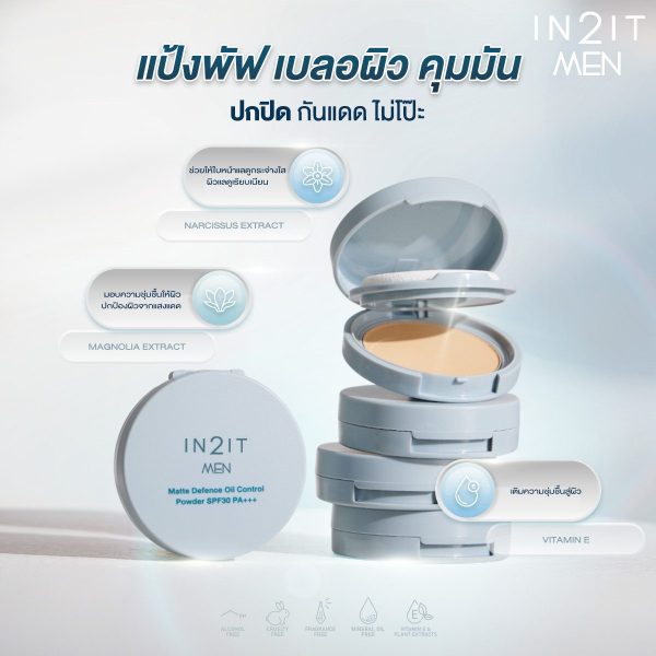 IN2IT MEN MATTE DEFENCE OIL CONTROL POWDER SPF30 PA+++ แป้งพัฟคุมมัน [MMPM]